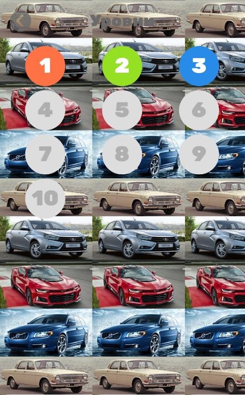 Je höher das Level, desto weniger berühmte Autos und mehr Briefzellen.