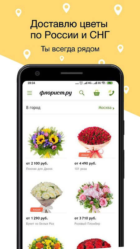Installieren Sie, um einen Blumenstrauß mit Kurierdienst in Russland und der Welt zu kaufen und zu bestellen!