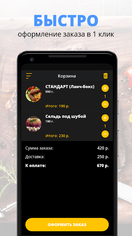 Foxbox-App | Obluchye ist eine bequeme Möglichkeit, Essen zu Ihnen nach Hause oder ins Büro zu bestellen. Immer auf unserer Speisekarte – köstliche Burger, Döner, Mittagessen.