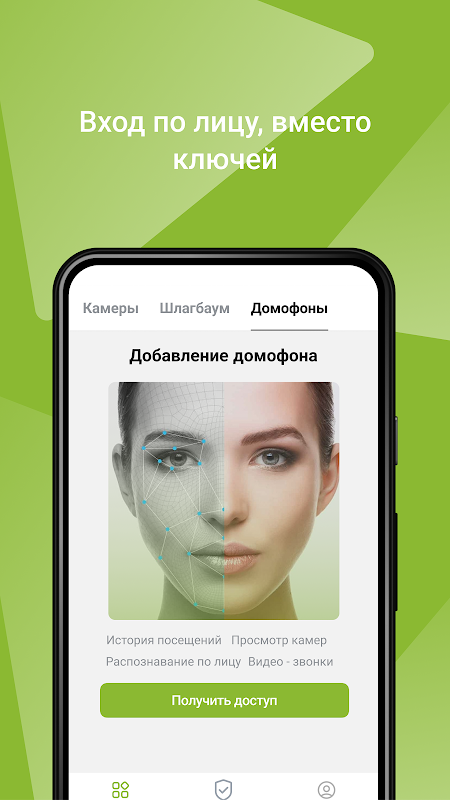 - Eingang durch die Gegensprechanlage entlang der Gesichtskontur. Sie müssen nicht nach den Schlüsseln suchen; die Gegensprechanlage erkennt Sie und öffnet die Tür.