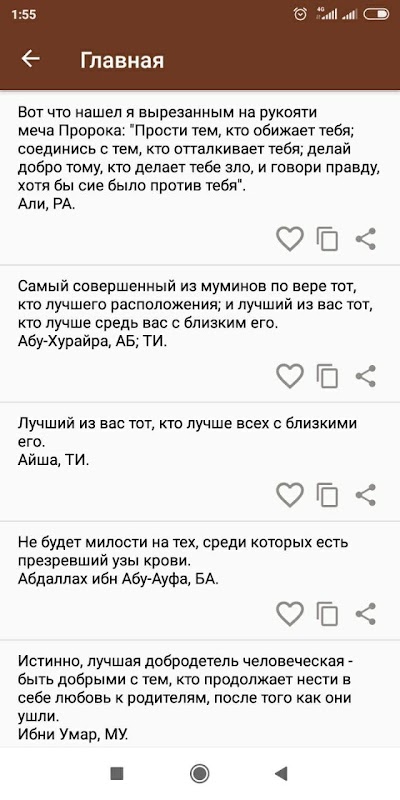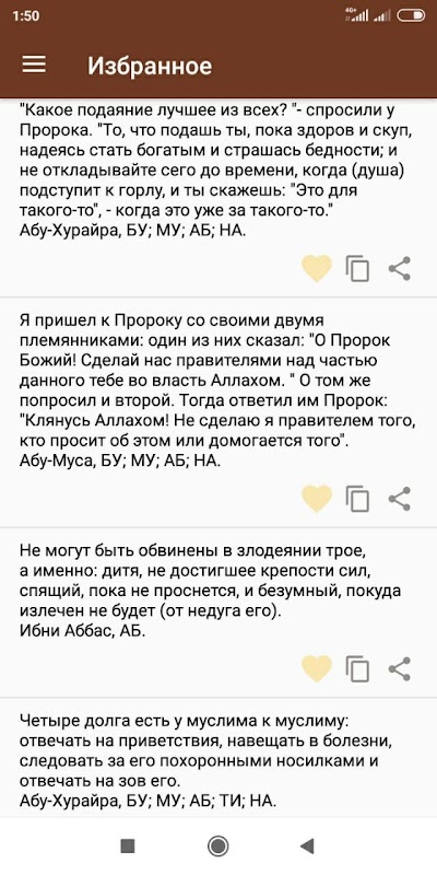 • Sie können Ihren Lieblings-Hadith zu Ihren Favoriten hinzufügen und teilen