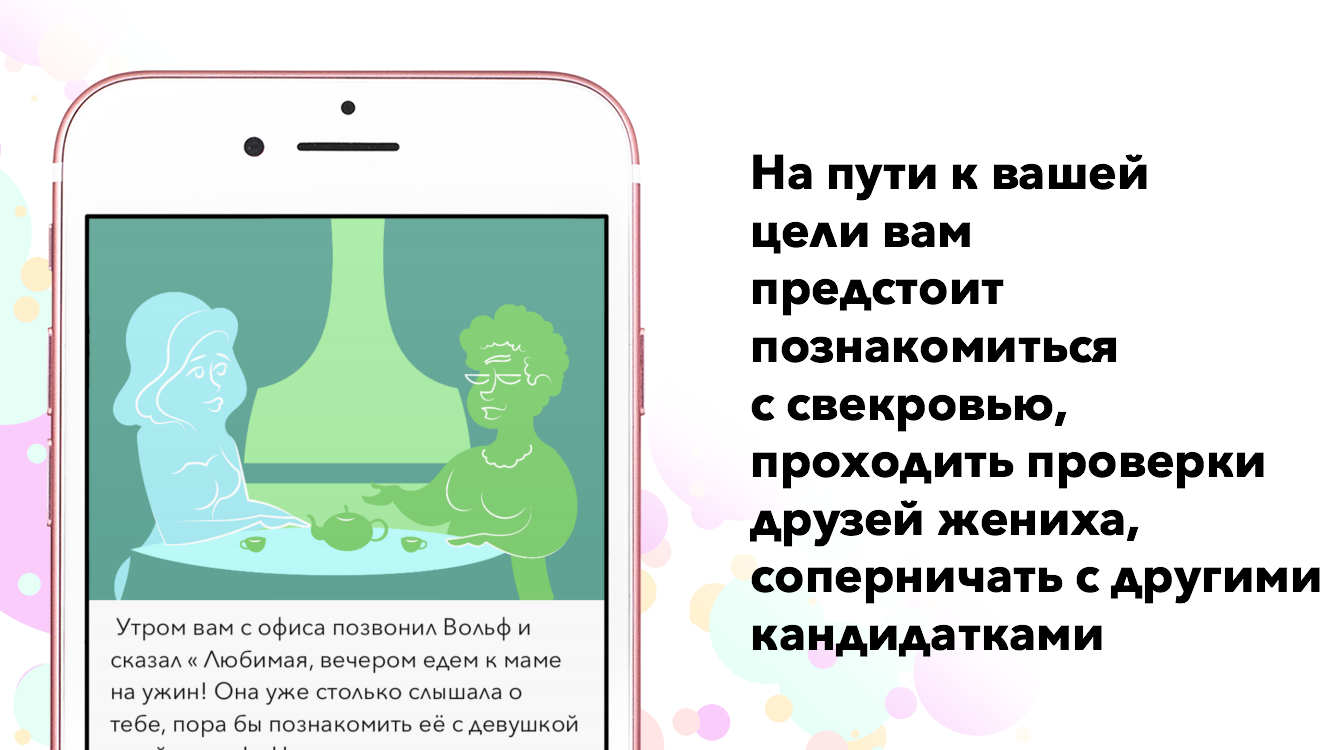 Während Ihrer Reise müssen Sie Ihren Auserwählten täuschen, mit ihm Verabredungen treffen, die Schwiegermutter treffen, die Freunde des Bräutigams überprüfen und sich mit anderen Kandidaten messen!
