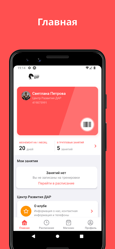Mit unserer Anwendung haben Sie Zugriff auf den Zeitplan, Ihre Einkäufe, Ihr persönliches Training und Ihr Abonnement.