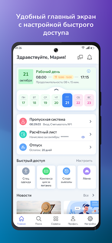Die Anwendung ermöglicht es einem Mitarbeiter des größten Unternehmens in Soligorsk, sich mit dem Arbeitsblatt, der Gehaltsabrechnung, Daten zu Bildung und Anreizen vertraut zu machen, Informationen über eine persönliche Material- und Ausrüstungskarte sowie Informationen über die Liste der Arbeitskleidung zu erhalten.