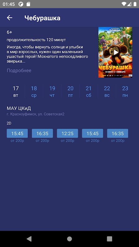Eintrittskarten für jede Filmvorführung im Kino TsKiD Krasnoufimsk.