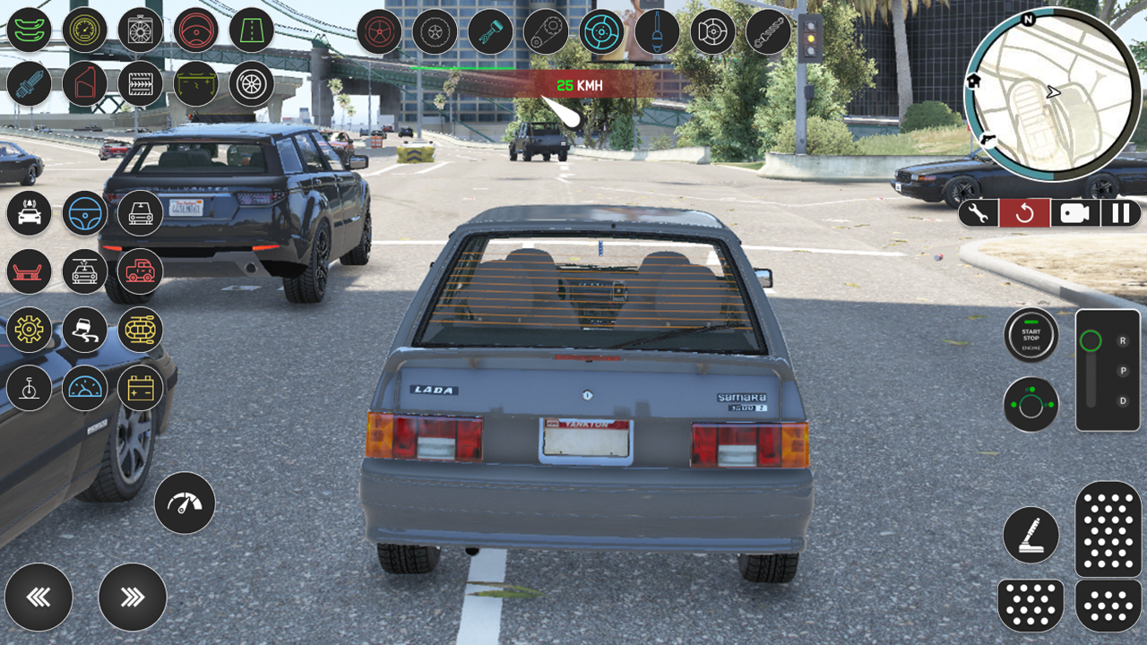 Ein Prototyp eines realistischen Fahrsimulators eines russischen Autos des Klassikers „Four: Russian Machines 2114“. Gehen Sie durch die Straßen dieser Stadt und genießen Sie dieses Rennen.