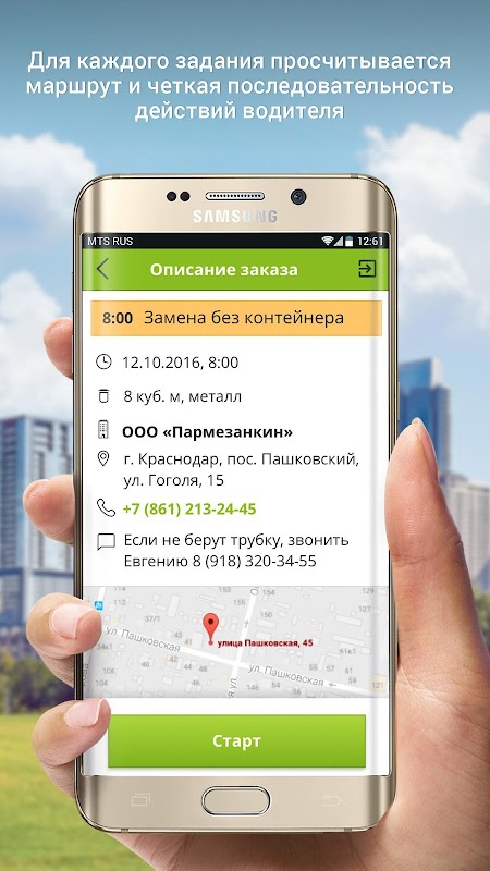 Приложение для водителей компании чистый город. Исполнение заявок на установку контейнеров для вывоза мусора