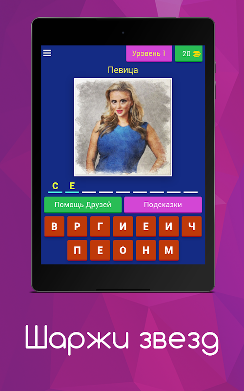 Rätsel, Mysterien, spannende Duelle, mehrstufige Missionen – all das in Caricatures of the Stars. Testen Sie Ihr Wissen, lösen Sie Rätsel und werden Sie Teil unserer Gaming-Community! Wir bieten Ihnen eine neue Portion Leidenschaft, denn es ist mehr als nur ein Quiz oder Wahrsagespiel. Dies ist eine wirklich faszinierende Reise in die Welt des Wissens.