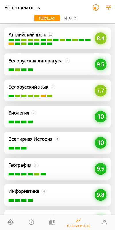 • информация о текущей успеваемости и итоговые оценки за четверти