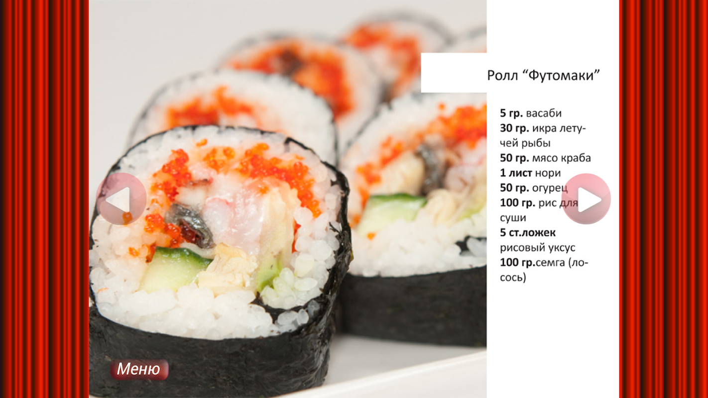 В настоящей книге вы найдете около 32 страниц с кулинарными рецептами роллов японской кухни.