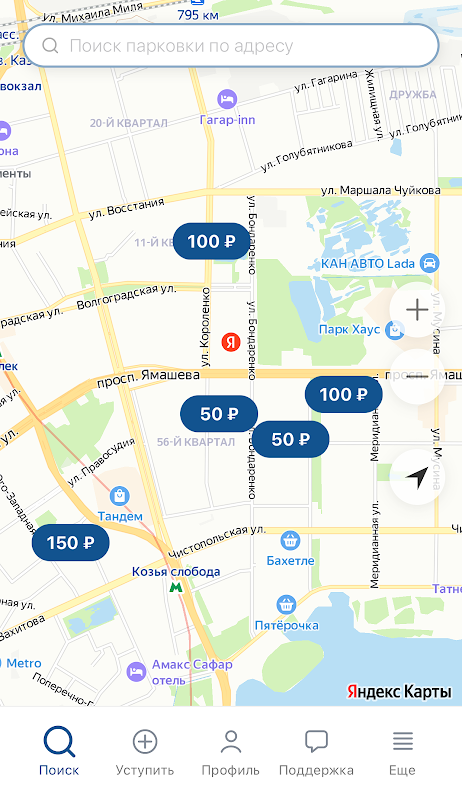 Mit der Bewerbung „Ich parke“ reservieren Sie einen Platz in der Nähe eines Einkaufszentrums, Bürozentrums, Parks, Kinos, Wohnhauses oder eines öffentlichen Ortes und überlassen ihn auf Wunsch dem Antragsteller.