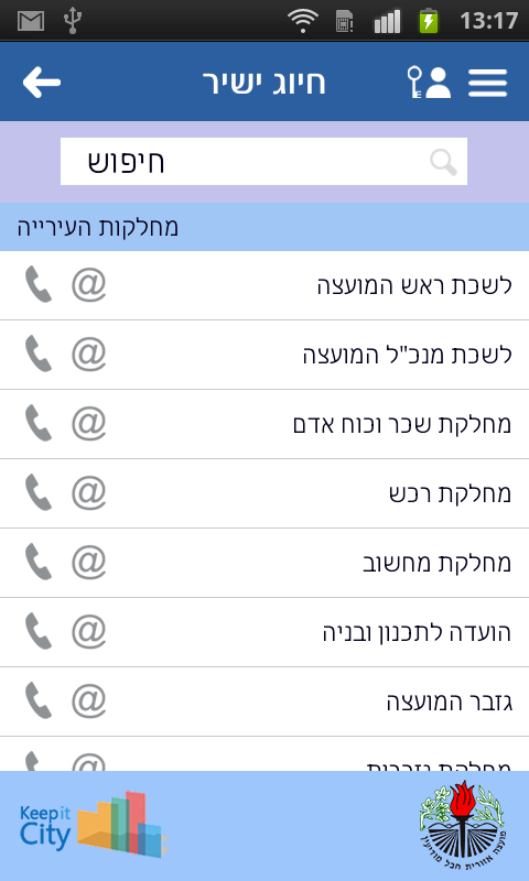 - אפליקציית חיוג בלחיצה למחלקות המועצה אזורית חבל מודיעין.