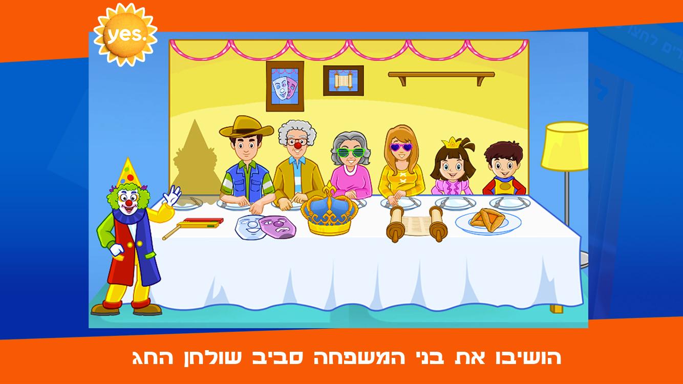 פורים- בחג זה התנסו הילדים במשחק הזיכרון ובהרכבת פאזל עם סמלי החג כגון: מסכות, רעשנים, תחפושות, אוזני המן, משלוח מנות ועוד. בנוסף, ייהנו ממשחק בישול בו יאפו אוזן המן לפורים ולבסוף יצטרכו להתאים את הושבת בני המשפחה מסביב לשולחן החג.