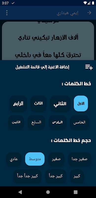 تم إضافة إمكانية تغيير الخط والحجم وإضافة الاغنية
