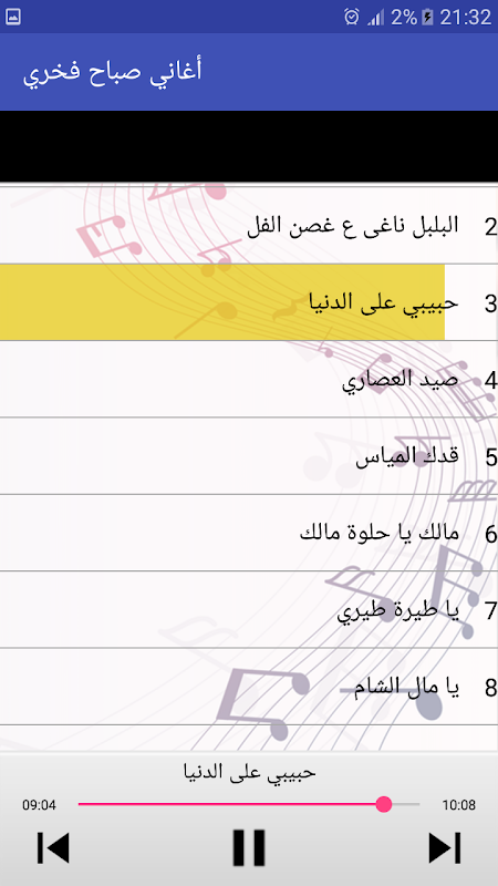 يحتوي التطبيق على ألأغاني التالية :