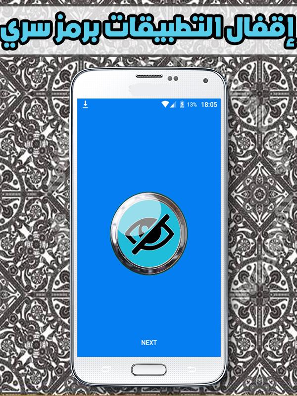 إذ يخفي أي تطبيق من القائمة الرئيسية. اختر البرنامج الذي تود إخفائه في قائمة برنامج إخفاء التطبيقات من الشاشة و سيتم إقفال التطبيق برقم سري.