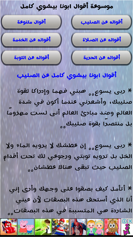 4- موسوعة اقوال ابونا بيشوي كامل وتشمل ( اقوال متنوعة - اقوال عن الصليب - اقوال عن الصلاة - اقوال عن الخدمة - أقوال عن الحرية - أقوال عن التوبة).