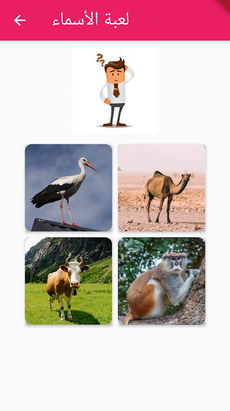 Die Anwendung enthält Spiele zum Unterrichten von Tiernamen, Tierstimmen und Tierbildern.