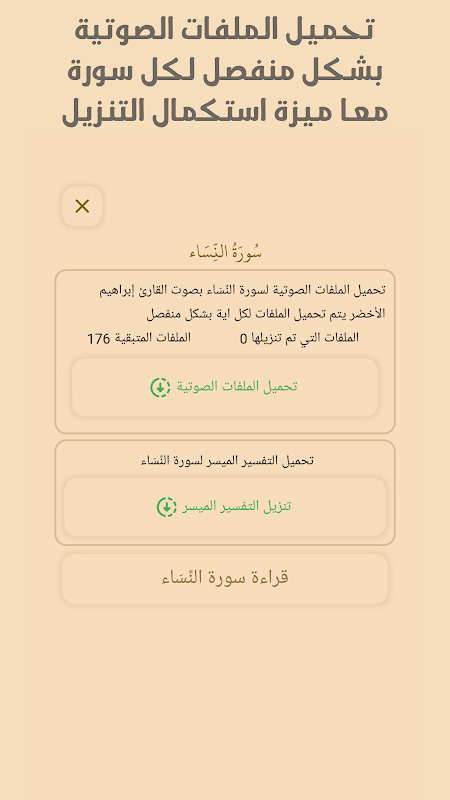 Sie können die einfache Erklärung jeder Sure separat herunterladen und auf den Vers doppelklicken, um die Interpretation zu lesen