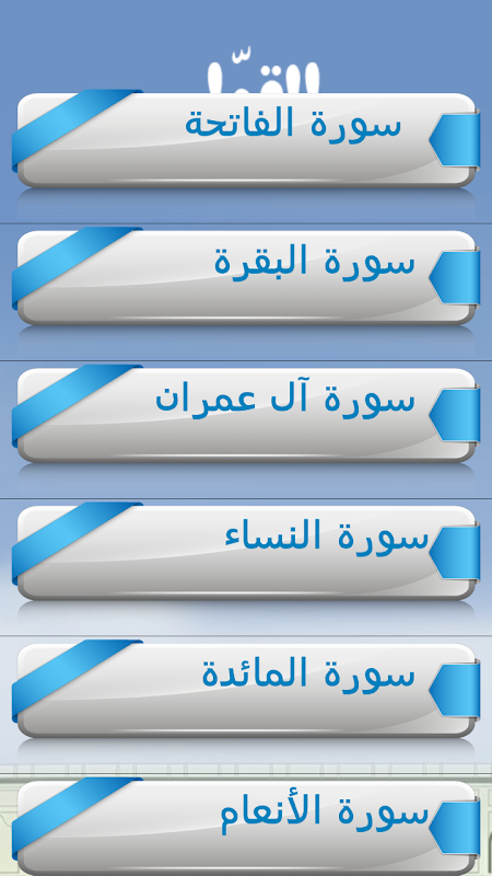 تطبيق يحتوي على جميع سور القران الكريم بعدة اقسام من القراء المعروفين