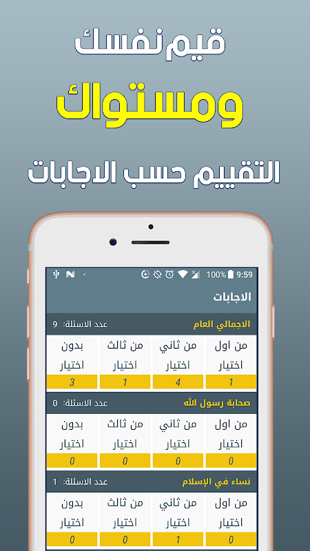 Islamische Wettbewerb umfasst mehr als 12.000 Fragen über den Islam, wo er mit Biographie des Propheten und die Gefährten des Gesandten Allahs und die Frauen des Islam beschäftigt und auch die Invasionen der islamischen Eroberungen, Führer und Märtyrer und auch in der islamischen Geschichte und Jurisprudenz Wissenschaftler und islamische Bücher und Kalifen, Fürsten und islamischen Ländern in den Zahlen und Fakten in Bezug auf den Islam und die Muslime und andere islamische Sehenswürdigkeiten.