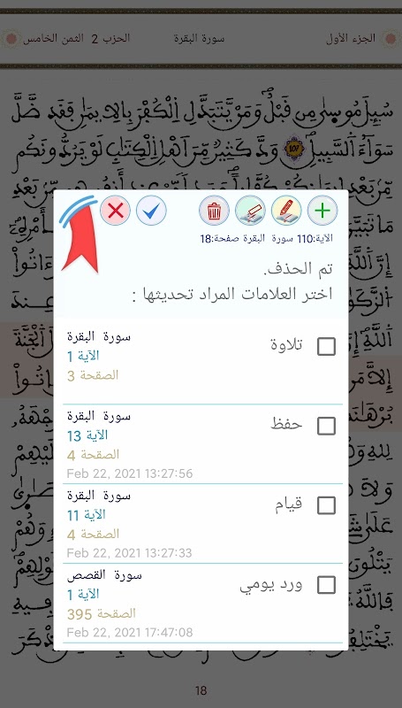 - Die Möglichkeit, die Audio-Rezitation der Verse zu wiederholen, um das Auswendiglernen zu etablieren.