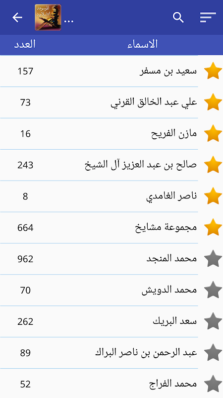امكانية ترتيب الشيوخ حسب عدد الخطب وحسب الاسم وحسب المفضلة في الاعلى يتم وضعهم