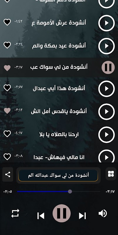 1- Die Anwendung enthält eine Bibliothek mit Liedern von Abdullah Al-Mahdawi. Benutzer können es anhören und mit Freunden teilen.