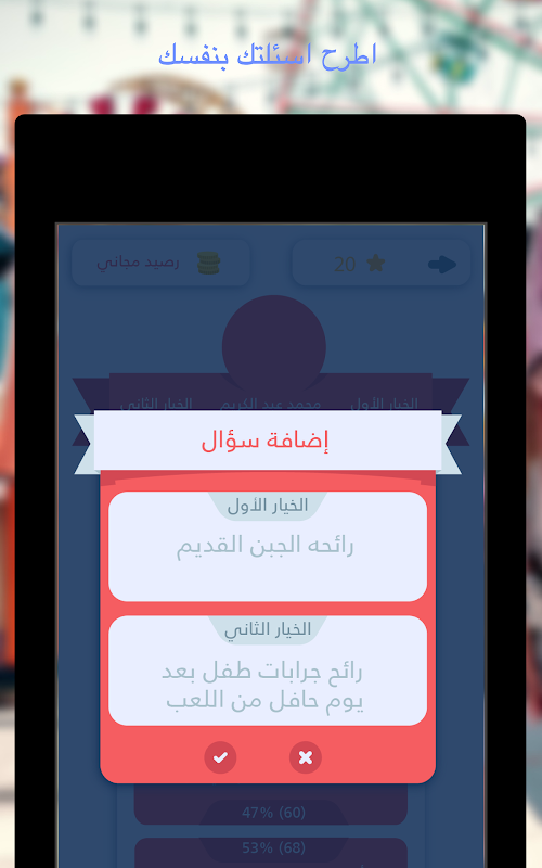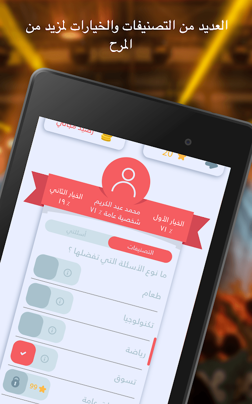 هل تحب الطبخ في المنزل أم الطبخ في الهواء الطلق؟ هل تفضل سناب شات أم الفيس بوك؟ من نجمك المفضل رونالدوا أم ميسي؟ ستعرف أجوبة لكل هذه الاسئلة وترى رأي العالم بها من خلال لعبة أنت الحكم