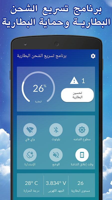 برنامج تسريع الشحن البطارية وحماية البطارية و تسريع الواي فاي مميز جدا و يحافظ على الهاتف لأنه من خلاله يمكنك من جعل الجوال اكثر جاذبية.