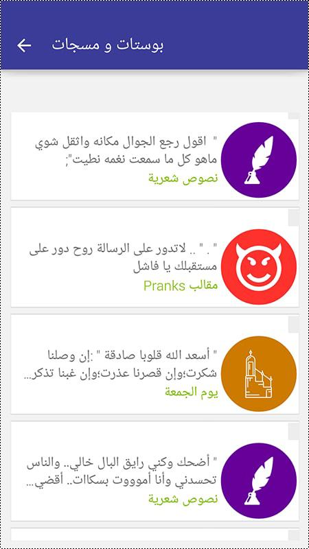 حمل أكبر واضخم تطبيق رسائل بوستات منشورات حالات و مسجات مع اكثر من 20 تصنيف متنوع و 20 الف رسالة .
