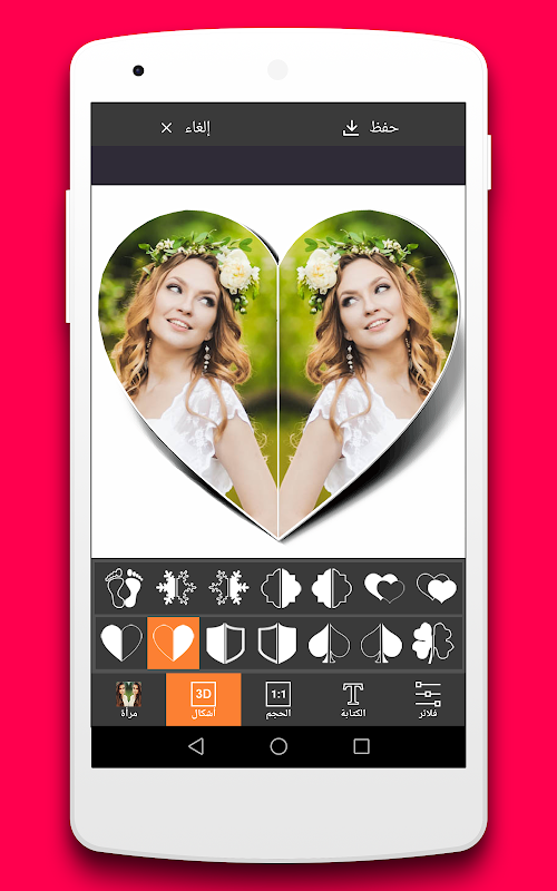 يحتوي برنامج تركيب الصور على خلفيات جميلة واطارات صور مذهلة : الرومانسية، والحب، والأسرة، أو إطار الطبيعة، إضافة صورة أو التقاط صورة. يحتوي على عدد كبير من اطارات صورة متاحة. تطبيق إطارات الصور رومنسية جديده هو تطبيق يحتوي على إطارات جميلة والتي تمكنك من تزيين صورك ووضع صورتك وصورة حبيبك في إطار جميل و رائع.
