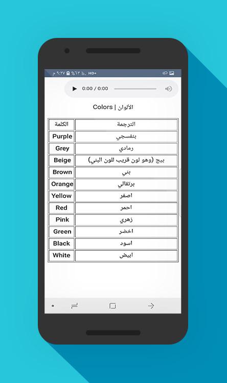 كما يتضمن العديد من الجمل والمفردات الاساسية في اللغة الانجليزية المترجمة للعربية ويتضمن محادثات وقصص مترجمة