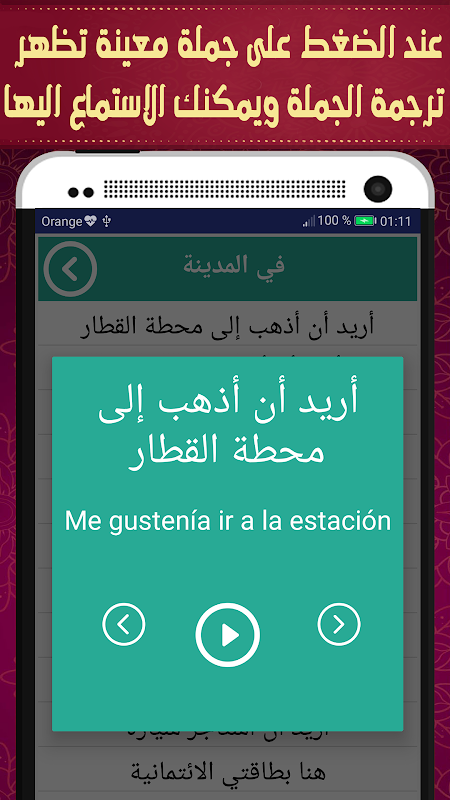 تطبيق تعلم اللغة الاسبانية هو تطبيق شامل يحتوي على عدة أقسام تعلم اللغة الاسبانية وعدة محادثات مختلف على حسب كل حالة كل هذا بالصوت لتسهيل التعلم وبدون انترنت كما يحتوي ايضا هذا التطبيق على طرق بسيطة سهلة وجديدة تسهيل التواصل إضافة الى نطق الكلمات.