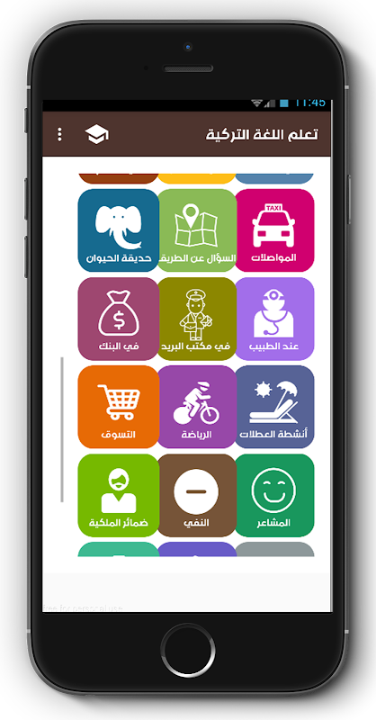اللغة التركية 2017 برنامج يعمل بشكل كامل بدون انترنت - ندون نت و تطبيق قواعد اللغة التركية 2017 بالصوت هو تطبيق شامل يحتوي على عدة أقسام وعدة محادثات مختلف على حسب كل حالة كل هذا بالصوت لتسهيل التعلم وبدون انترنت كما يحتوي ايضا تطبيق قواعد اللغة التركية 2017 على طرق بسيطة سهلة وجديدة مخصص للصغار والكبار. فكل جملة لها ترجمتها باللغة التركية والعربية تسهيل التواصل إضافة الى نطق الكلمات و مخصص للصغار والكبار فكل جملة لها ترجمتها باللغة التركية والعربية