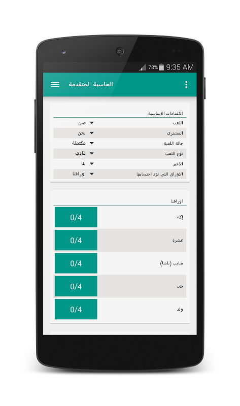 حاسبة البلوت هو برنامج بسيط يسهل تسجيل نتيجة نشرات البلوت يغني عن استخدام الورقة والقلم