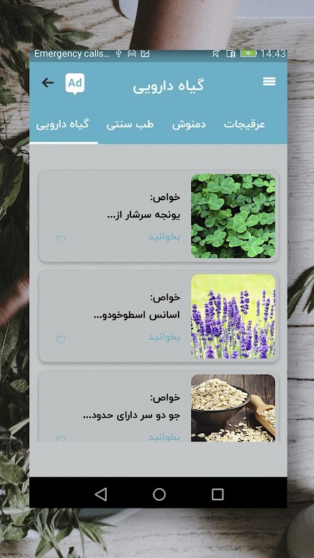 برخی از ویژگی های برنامه طب سنتی اندروید: