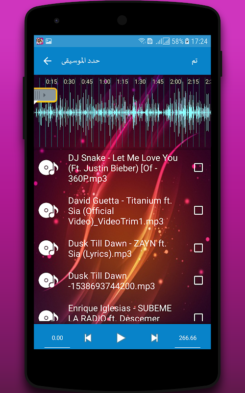 - عند اضافتك للمقطع الصوتي او الاغنية تبقى جودة الصوت عالية جدا مع امكانية تقطيع الاغنية واضافة اليها ثأتيرات.