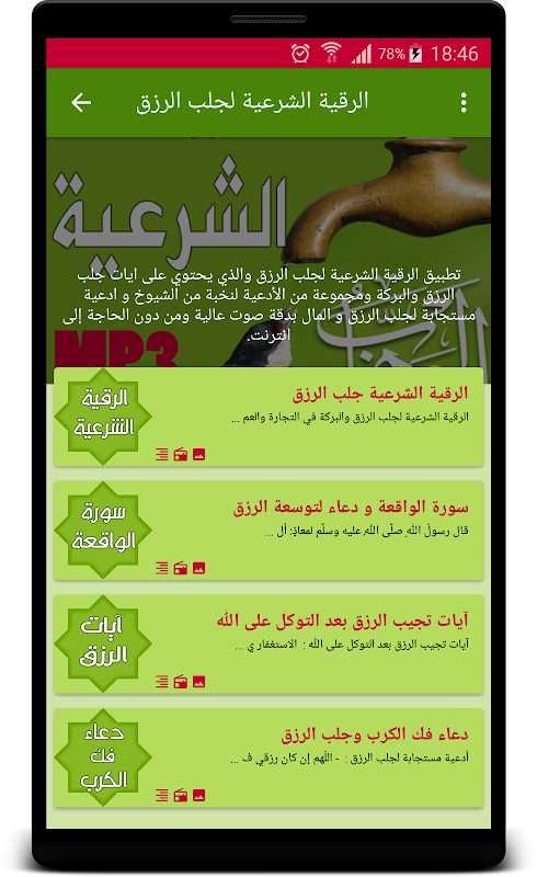 Wir bieten Ihnen die Anwendung und das Programm der legalen Ruqyah, um einen Lebensunterhalt zu sichern. Diese enthält die Verse, einen Lebensunterhalt und Segen zu bringen, sowie eine Gruppe von Bitten an eine Elite-Gruppe von Scheichs und Bitten, um Lebensunterhalt und Geld mit einer hohen Sprachgenauigkeit und ohne die Notwendigkeit des Internets zu bringen.