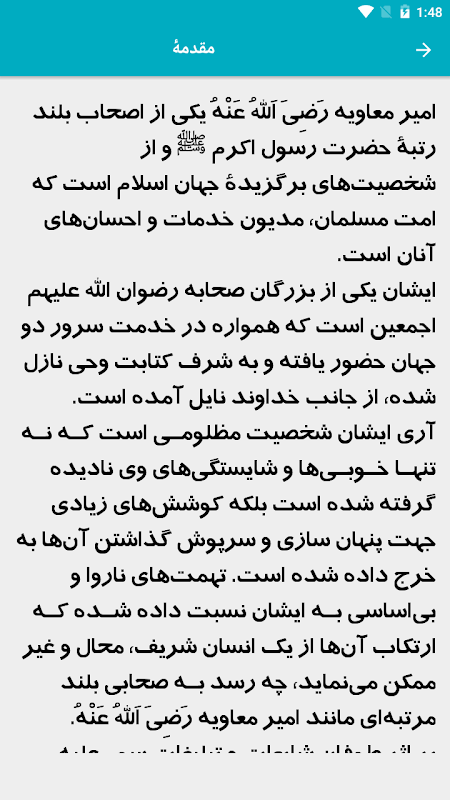 Es ist eine Biographie von Mu'awiyah ibn Abi Sufyan und seinen Diensten für die islamische Gemeinschaft. In dieser Arbeit wurde versucht, ein korrektes und unvoreingenommenes Bild von Amir Mu'awiyah zu zeichnen, indem Streitigkeiten vermieden und historische Streitigkeiten beschrieben wurden, und die Fakten aus dem Staub einiger Zweifel herauszuholen. Zu Beginn beschreibt er Mu'awiyahs familiären Hintergrund und seine Abstammung und erzählt kurz von seiner Kindheit bis zur Jugend und seiner Konversion zum Islam. Im Folgenden werden die Ansichten der Gefährten und ihrer Anhänger zu seiner Persönlichkeit und seinen Handlungen zitiert und anschließend die verschiedenen Dienste dieses mächtigen Herrschers für die islamische Gesellschaft sowie die militärischen und sozialen Errungenschaften während seiner Regierungszeit beschrieben. Der letzte Teil des Buches ist einer kurzen Erwähnung der moralischen und religiösen Tugenden und Tugenden von Amir Mu'awiyah gewidmet.