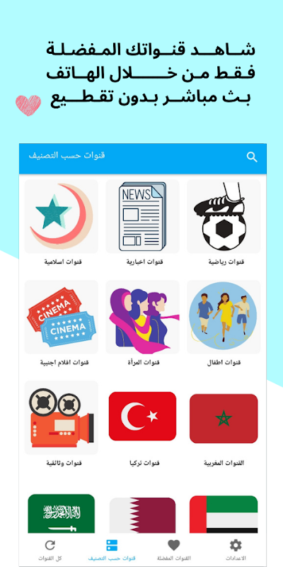 Eine TV-Anwendung, um die besten arabischen und internationalen Kanäle ohne Schnitt zu sehen, und überall, wo Sie sich auf einfachste Weise befinden, die TV-Anwendung aller Kanäle, um Ihre Lieblingsprogramme den ganzen Tag über ohne Schnitt zu sehen. Fernseher in einem einfachen und eleganten Design, das das Ansehen und Genießen der Live-Übertragung erleichtert.