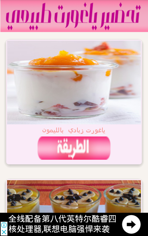 تجدين في التطبيق :( طريقة عمل ياغورت بالفرولة و التوت ،طريقة عمل ياغورت فانيلا،طريقة تحضير رايب بالكراميل، بعض وصفات سهل دانيت ياغورت وعمل البسبوسة ).