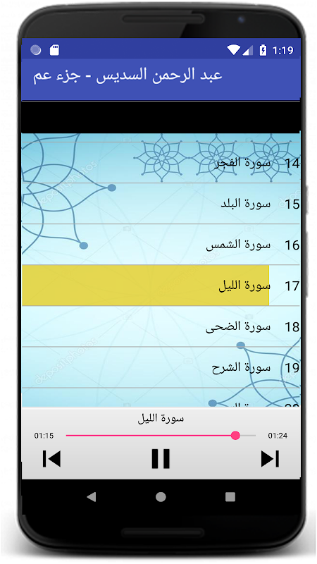 و تطبيقنا هذا يمكنكم من تحميل جزء عم من القران الكريم بصوت الشيخ عبد الرحمن السديس بدون الحاجة إلى استعمال الانترنت والذي يساعد على حفظ هذا الجزء من المصحف الكريم و الخشوع والاستمتاع بأحسن الأصوات القارءة للقرآن الكريم .