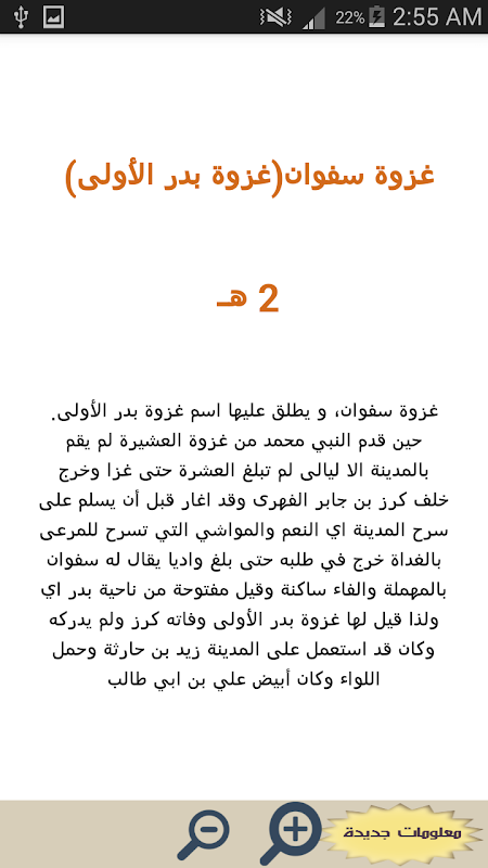 يحتوي علي غزوات الرسول بتواريخ حدوثها و اهم الاحداث فيها.