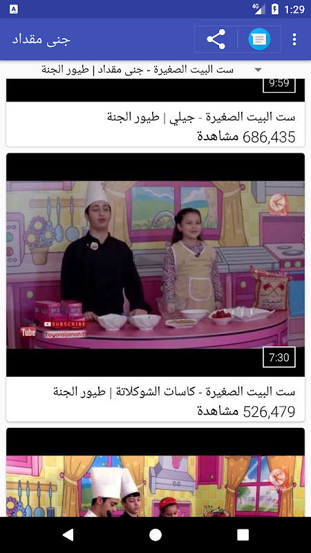 يحتاج للاتصال بالانترنت لجلب الفيديوهات الجديدة الخاصة بجنى مقداد ..