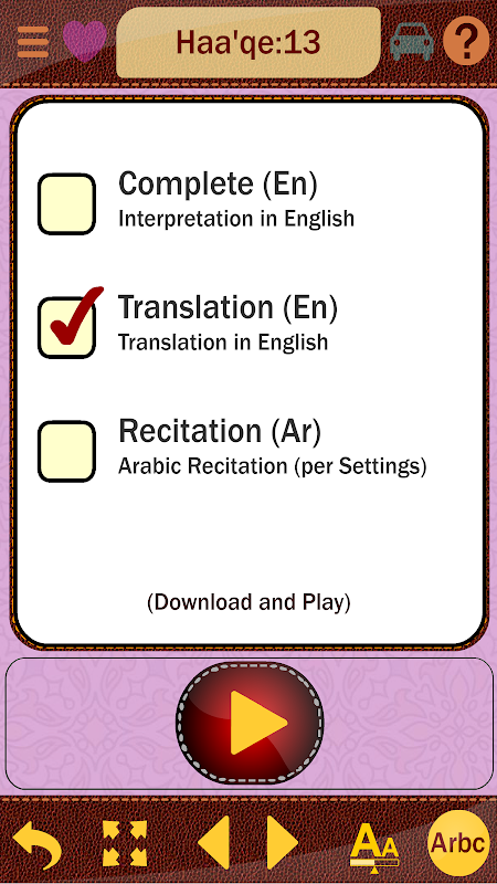 Diese Anwendung enthält den vollständigen arabischen Korantext mit einer leicht lesbaren Schriftart, die auf fünf verschiedene Größen angepasst ist, sowie eine individuelle Audiointerpretation aller 6236 Verse sowohl in vollständiger als auch in zusammenfassender (Auszugs-)Version auf Englisch und Farsi.