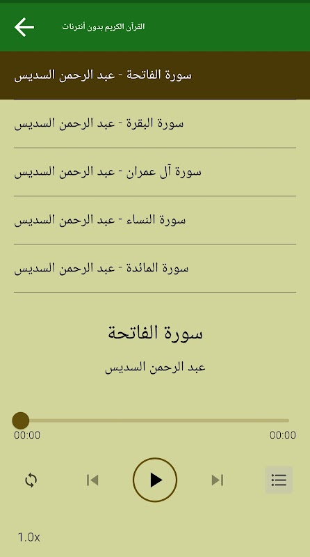 Alle Suren stehen für die Offline-Wiedergabe zur Verfügung, sodass Sie die Rezitation auch auf Reisen oder an Orten mit schlechtem Netzwerk genießen können.