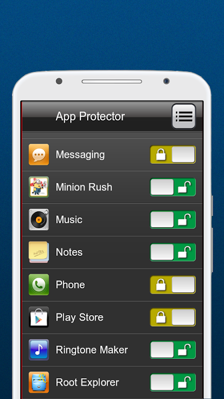 يتميز كدلك بواجهة بسيطة اخفاء التطبيقات و عدم السماح لاي شخص للدخول اليها طريقة عمل التطبيق اخفاء التطبيقات من الشاشة افتح التطبيق و ادخل كلمة السر حدد التطبيقات التي تريد اخفائها بالرقم السري تهانينا الان تمكنت من حماية هاتفك و خصوصياتك, وقد اعتمدنا على البساطة في تصميم هذا البرنامج حتى تتمكن من تشغيلة والتعامل معة بكل سهولة ويسر.