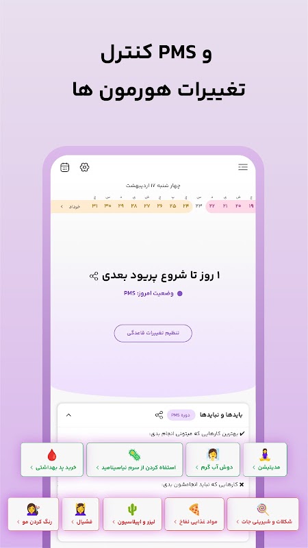 1. تقویم پریود و پیشبینی قاعدگی