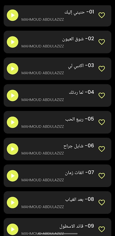 Hier finden Sie die besten Lieder des Künstlers Mahmoud Abdel Aziz.